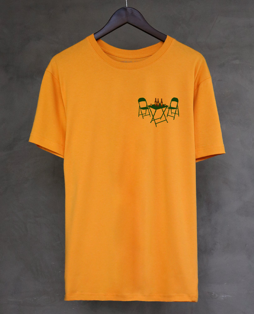Poucas coisas unem tanto os brasileiros quanto o ritual sagrado do happy hour. É ali, em volta da mesa de bar, com cadeiras de plástico, garrafas suadas, linguicinha em rodela espetada no palito e risadas soltas, que nascem histórias, amizades, desabafos e planos mirabolantes que resolvem as mazelas do país e fazem a seleção jogar bem. Esta camiseta de brasilidades traduz esse momento universal em uma arte minimalista e elegante, lembrando que, no Brasil, a vida sempre fica melhor quando compartilhada em boa companhia.
