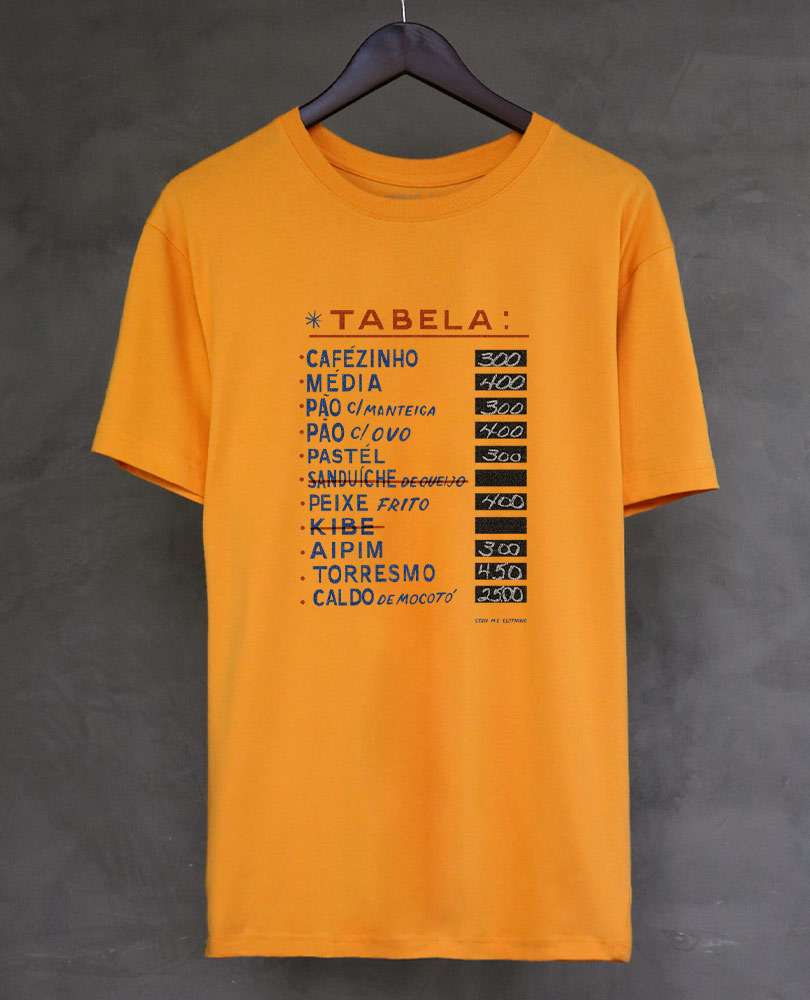 Toda cidade do Brasil tem aquele bar raiz, com a tabela de preços escrita a giz na parede, e é ali que mora a verdadeira poesia do boteco. Café, pastel, pão com ovo, torresmo, caldo de mocotó: o cardápio é simples, direto e delicioso. Esta camiseta de brasilidades transforma essa estética tão familiar em design, celebrando o charme do improviso e da cultura de rua que só o Brasil entende. Um clássico absoluto.